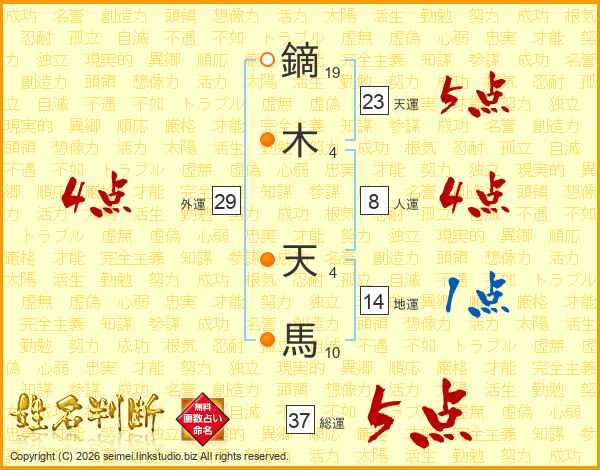 鏑木天馬さんの総運は37画の5点!