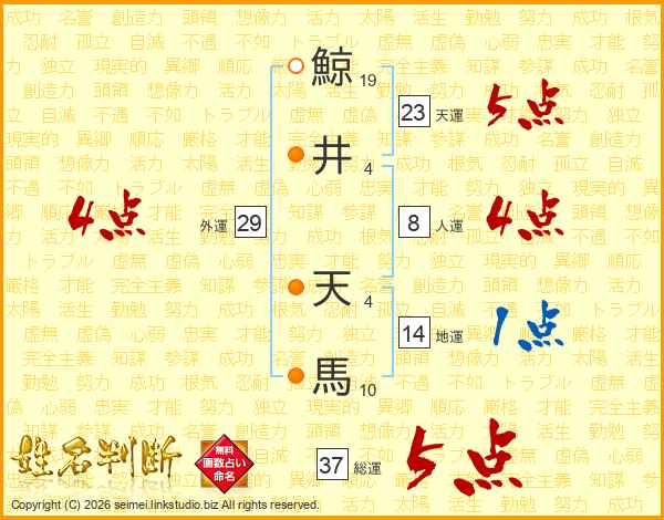鯨(19画)井(4画) 天(4画)馬(10画)