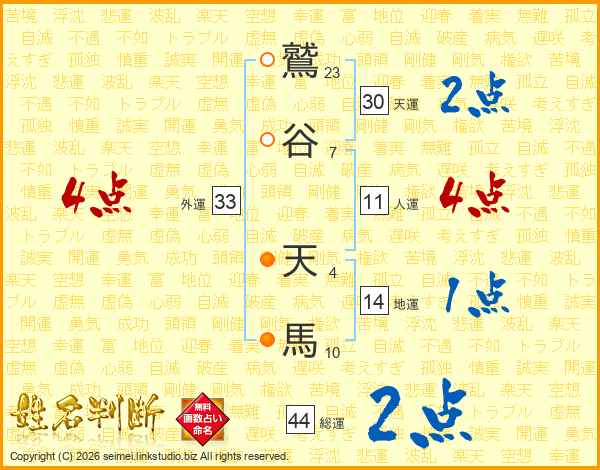 鷲谷天馬さんの総運は44画の2点!