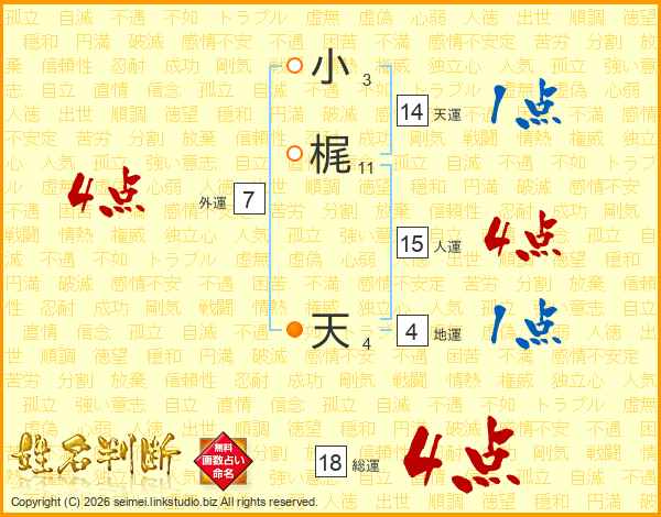 小梶天さんの総運は18画の4点!