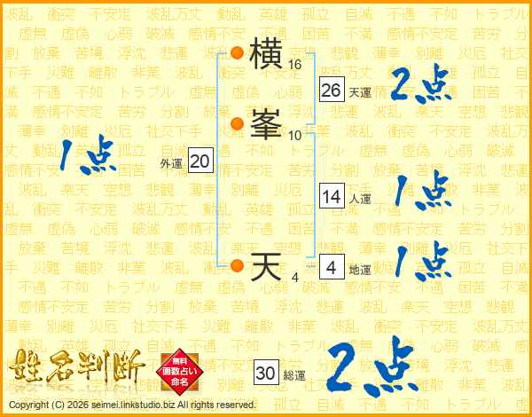 横峯天さんの総運は30画の2点!