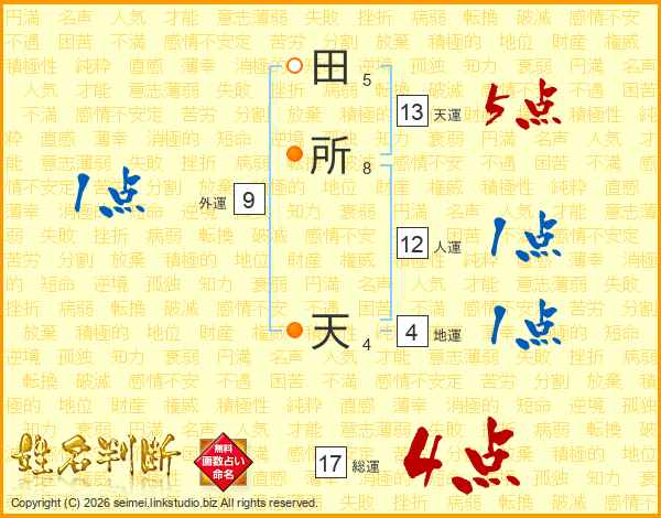 田(5画)所(8画) 天(4画)