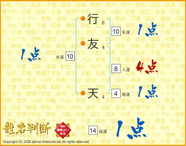 行友天さんの総運は14画の1点!