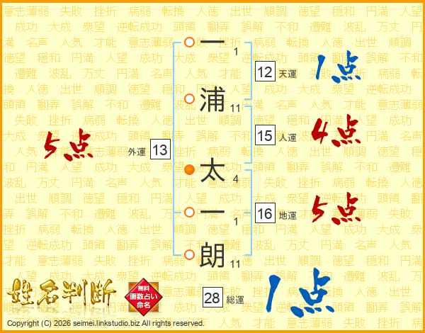 一浦太一朗さんの総運は28画の1点!