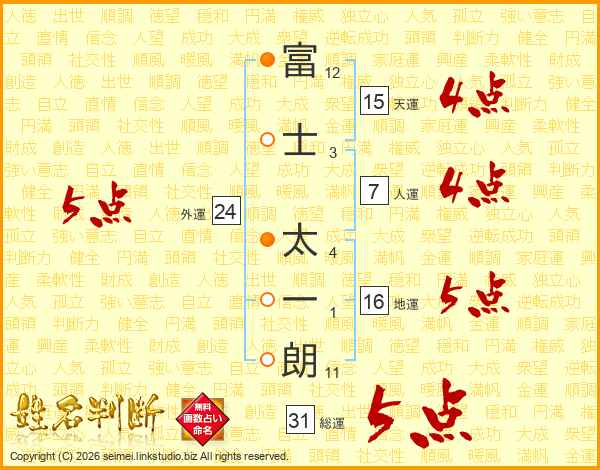 富士太一朗さんの総運は31画の5点!