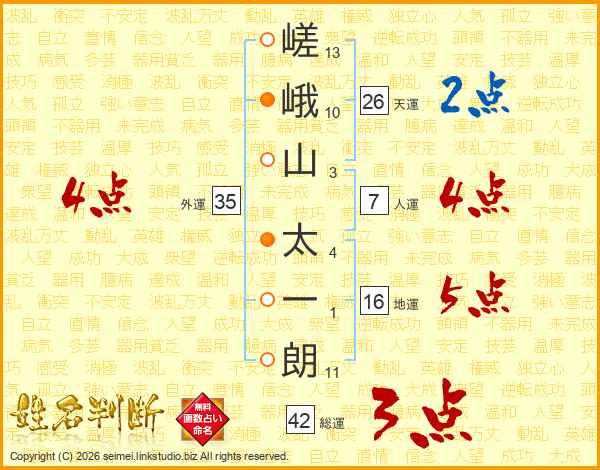 嵯峨山太一朗さんの天運は26画の2点!