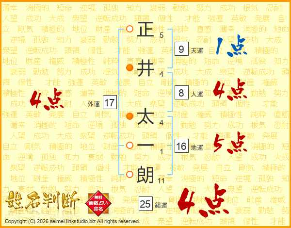 正井太一朗さんの地運は16画の5点!