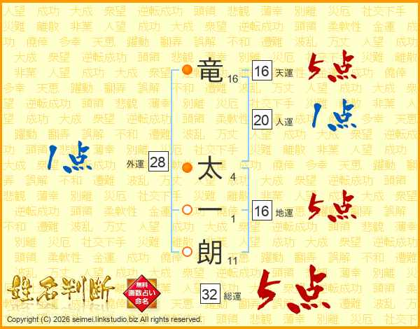 竜太一朗さんの天運は16画の5点!
