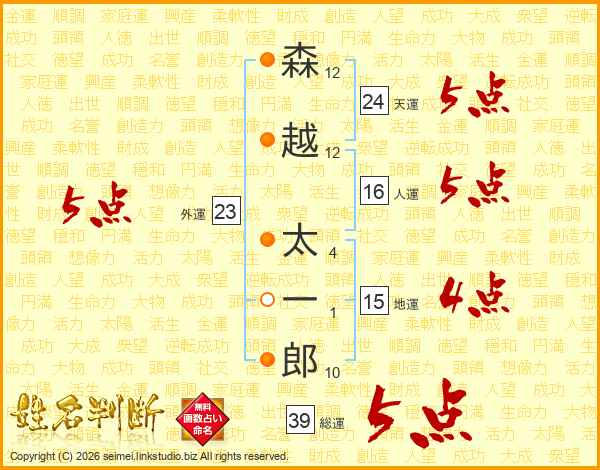 森越太一郎さんの総運は39画の5点!