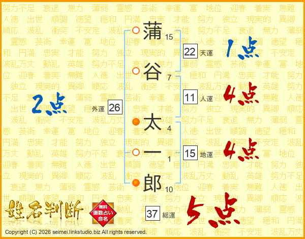 蒲谷太一郎さんの総運は37画の5点!