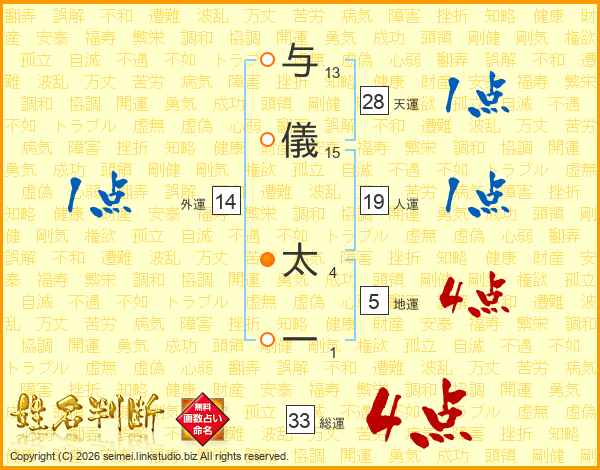 与儀太一さんの総運は33画の4点!