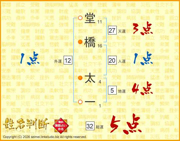 堂橋太一さんの総運は32画の5点!