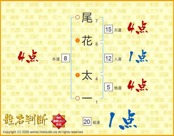 尾花太一さんの総運は20画の1点!