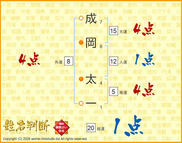 成岡太一さんの天運は15画の4点!