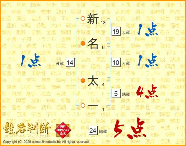 新名太一さんの総運は24画の5点!