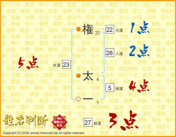権太一さんの人運は26画の2点!