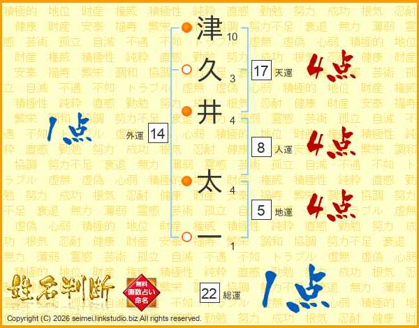 津久井太一さんの天運は17画の4点!