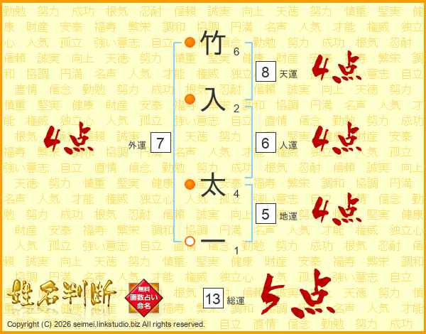竹入太一さんの総運は13画の5点!