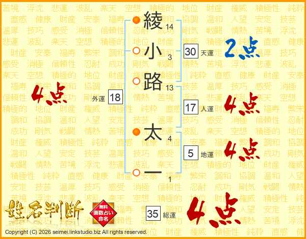 綾小路太一さんの総運は35画の4点!