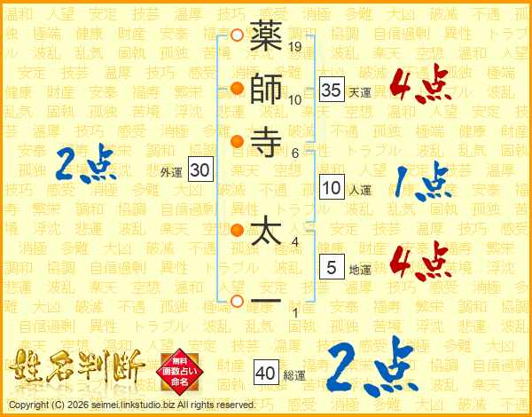 薬師寺太一さんの総運は40画の2点!