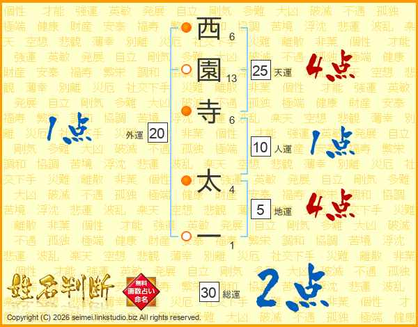 西園寺太一さんの総運は30画の2点!