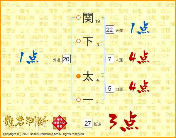 関下太一さんの総運は27画の3点!