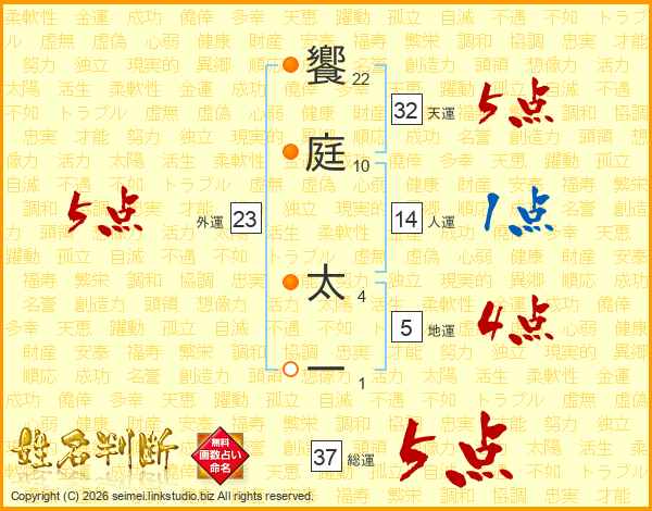 饗庭太一さんの総運は37画の5点!