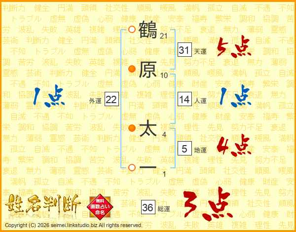 鶴原太一さんの天運は31画の5点!