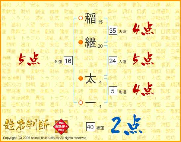 稲継太一さんの総運は40画の2点!