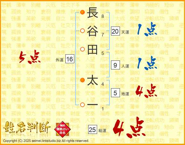 長谷田太一さんの総運は25画の4点!