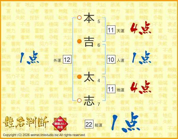 本(5画)吉(6画) 太(4画)志(7画)