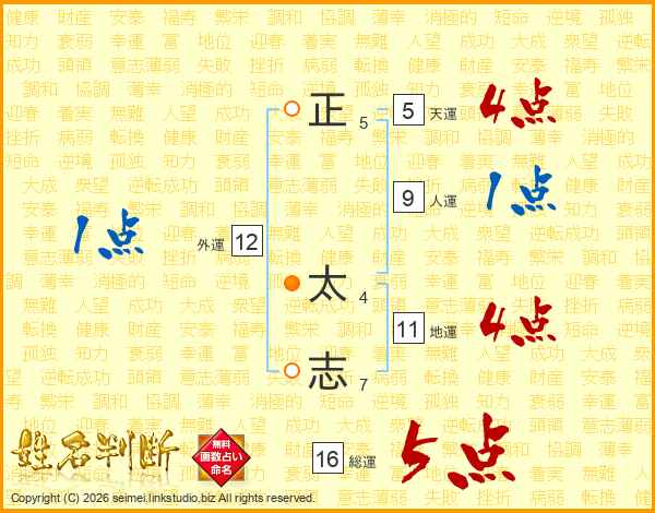 正(5画) 太(4画)志(7画)