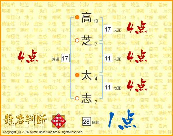高芝太志さんの地運は11画の4点!
