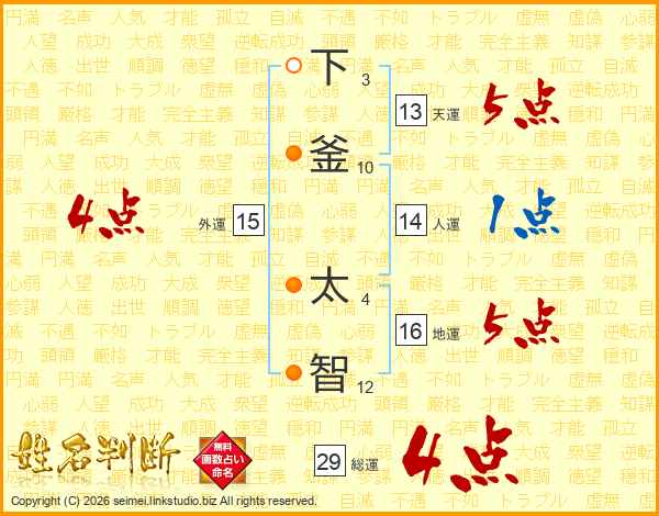 下釜太智さんの総運は29画の4点!