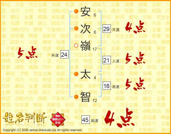安次嶺太智さんの総運は45画の4点!