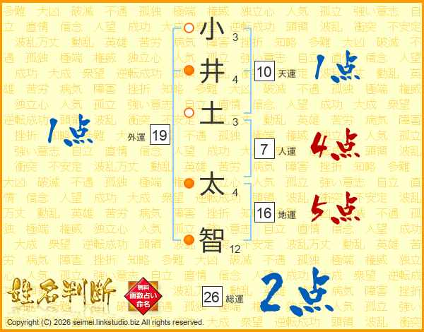 小(3画)井(4画)土(3画) 太(4画)智(12画)