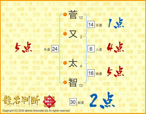 菅又太智さんの総運は30画の2点!