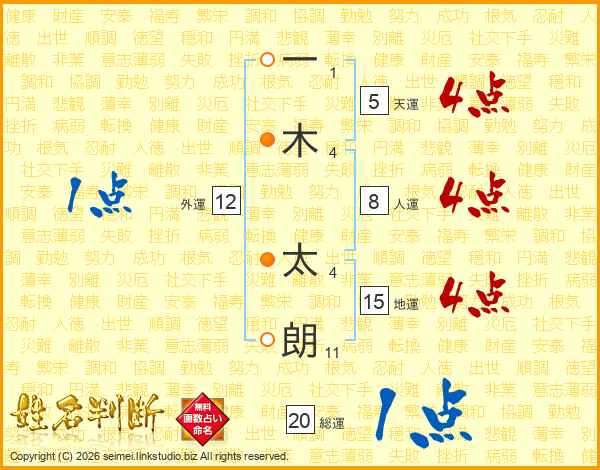 一(1画)木(4画) 太(4画)朗(11画)