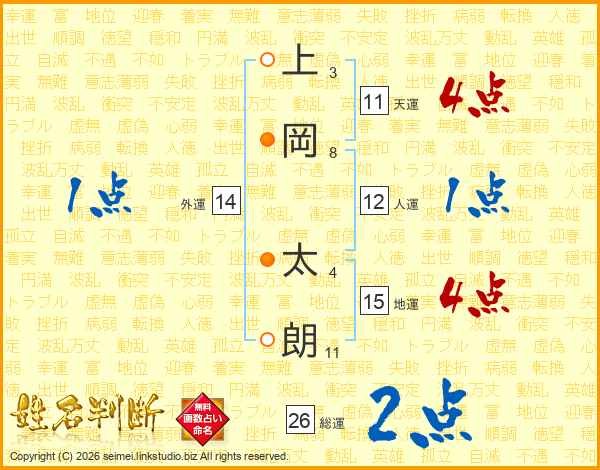 上岡太朗さんの天運は11画の4点!