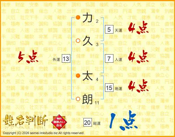 力(2画)久(3画) 太(4画)朗(11画)