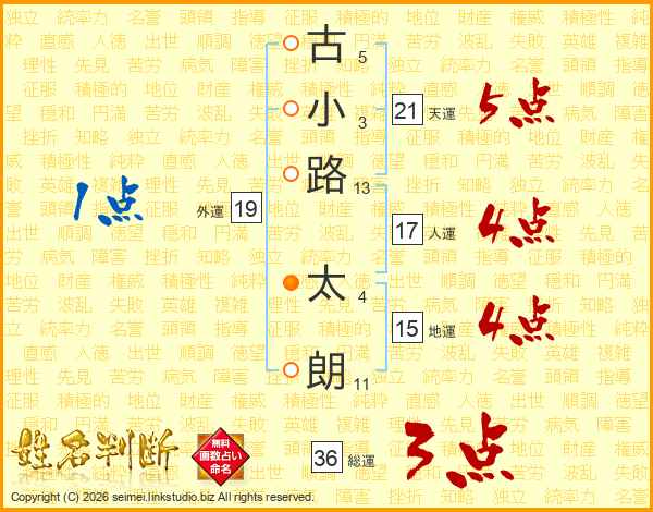 古小路太朗さんの天運は21画の5点!