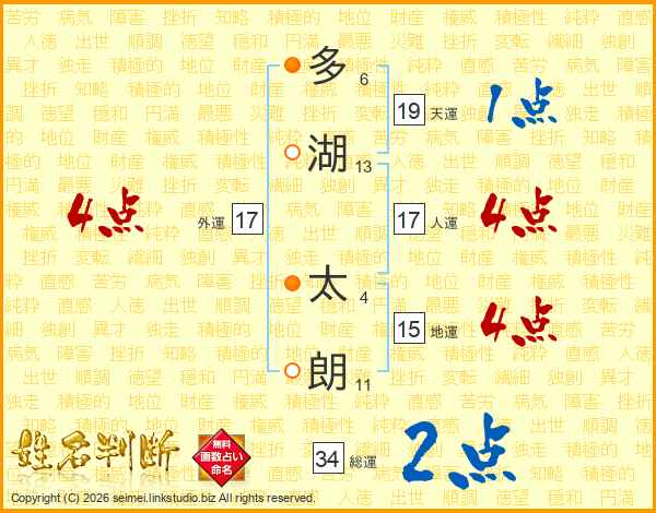 多湖太朗さんの人運は17画の4点!