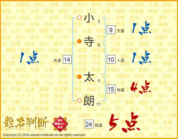 小寺太朗さんの総運は24画の5点!