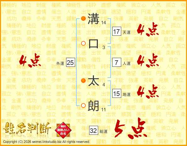 溝口太朗さんの天運は17画の4点!