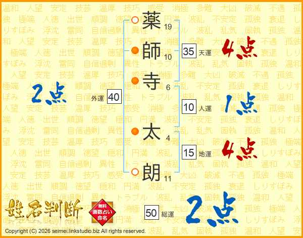 薬師寺太朗さんの総運は50画の2点!