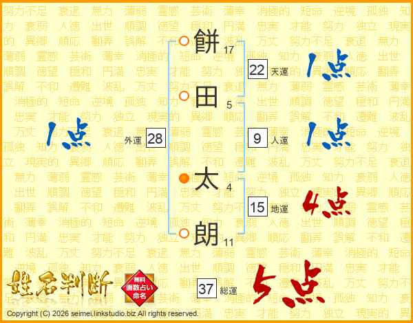 餅田太朗さんの総運は37画の5点!