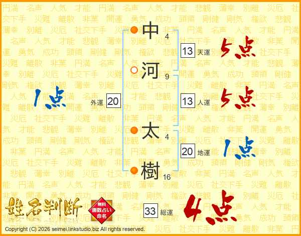 中河太樹さんの総運は33画の4点!
