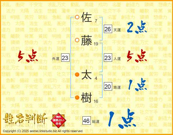 佐(7画)藤(19画) 太(4画)樹(16画)