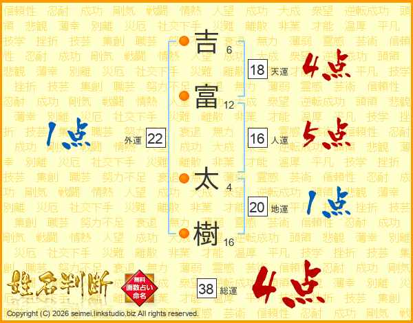 吉富太樹さんの総運は38画の4点!