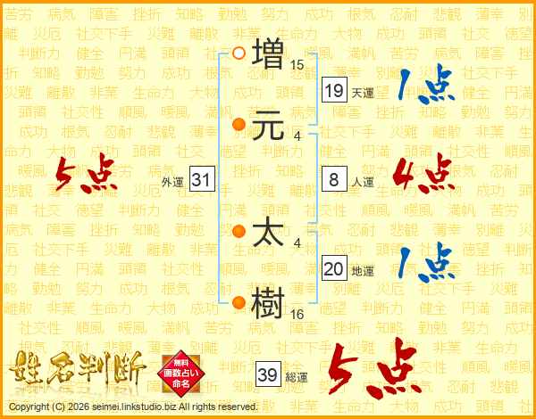 増元太樹さんの総運は39画の5点!